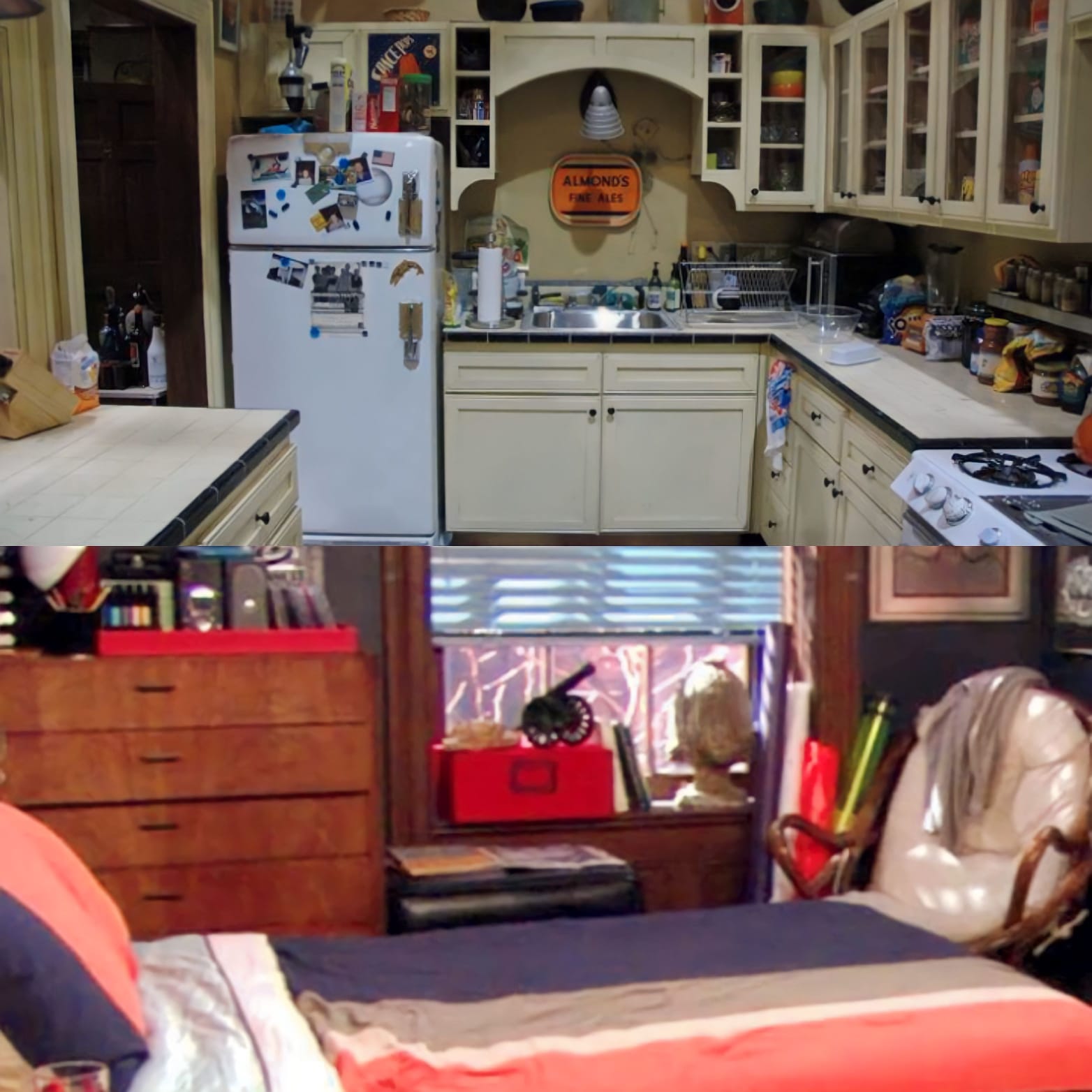 - Ruang tamu: Ruang tamu Ted adalah tempat nongkrong utama bagi Ted dan teman-temannya. Ruang ini memiliki sofa merah, TV, meja kopi, dan rak buku. Ada juga poster film Casablanca dan The Graduate di dinding.