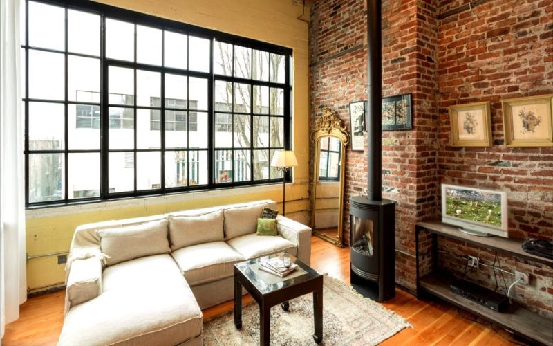 Yang paling mencolok dari desain interior industrial adalah Open concept layout, atap yang tinggi, material dinding yang terbuka, percampuran antara barang-barang usang dan baru