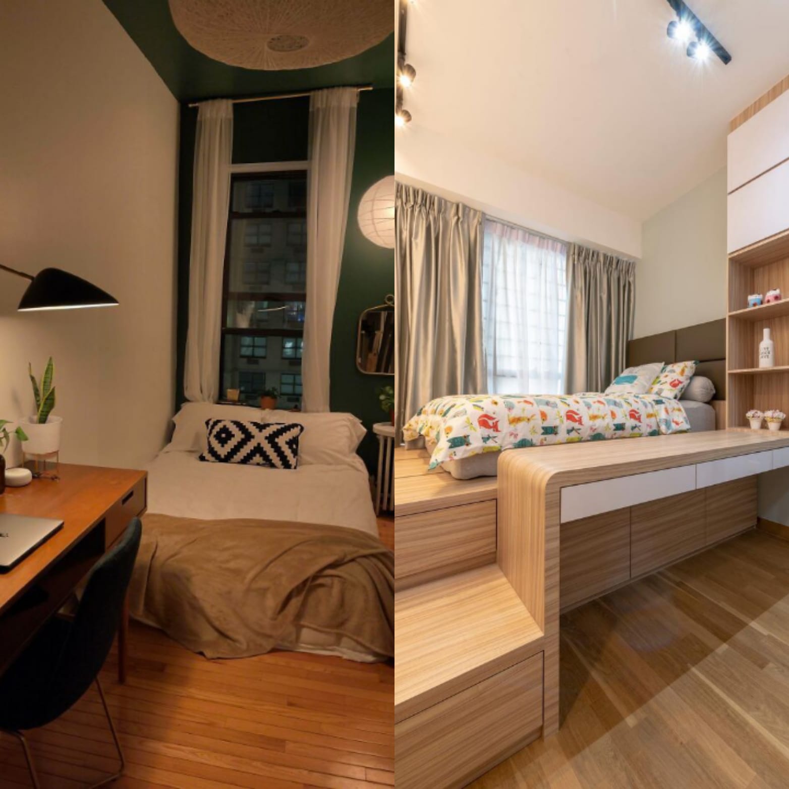 Layout ini cocok untuk kamar tidur kecil yang berbentuk persegi atau persegi panjang. Tempatkan tempat tidur di dinding sudut ruangan, sehingga menyisakan ruang yang cukup di tengah ruangan untuk perlengkapan lain seperti meja rias atau lemari.
