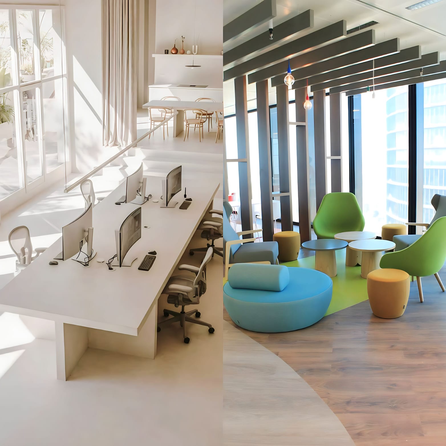 Desain interior modern office biasanya menggunakan furnitur dan aksesoris yang terbilang simpel dan minimalis. Warna-warna yang digunakan juga cenderung netral, seperti putih, abu-abu, dan hitam. Konsep ini cocok untuk perusahaan yang ingin menciptakan suasana yang profesional dan formal.