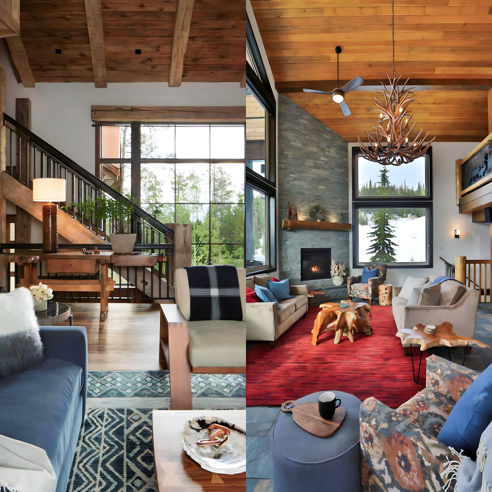 Desain rustic living room adalah gaya interior yang dapat dicirikan oleh penggunaan bahan-bahan alami, seperti kayu, batu, dan kulit. Desain ini memiliki suasana yang hangat dan mengundang, dan sering didekorasi dengan furnitur dan aksesori vintage atau antik.
