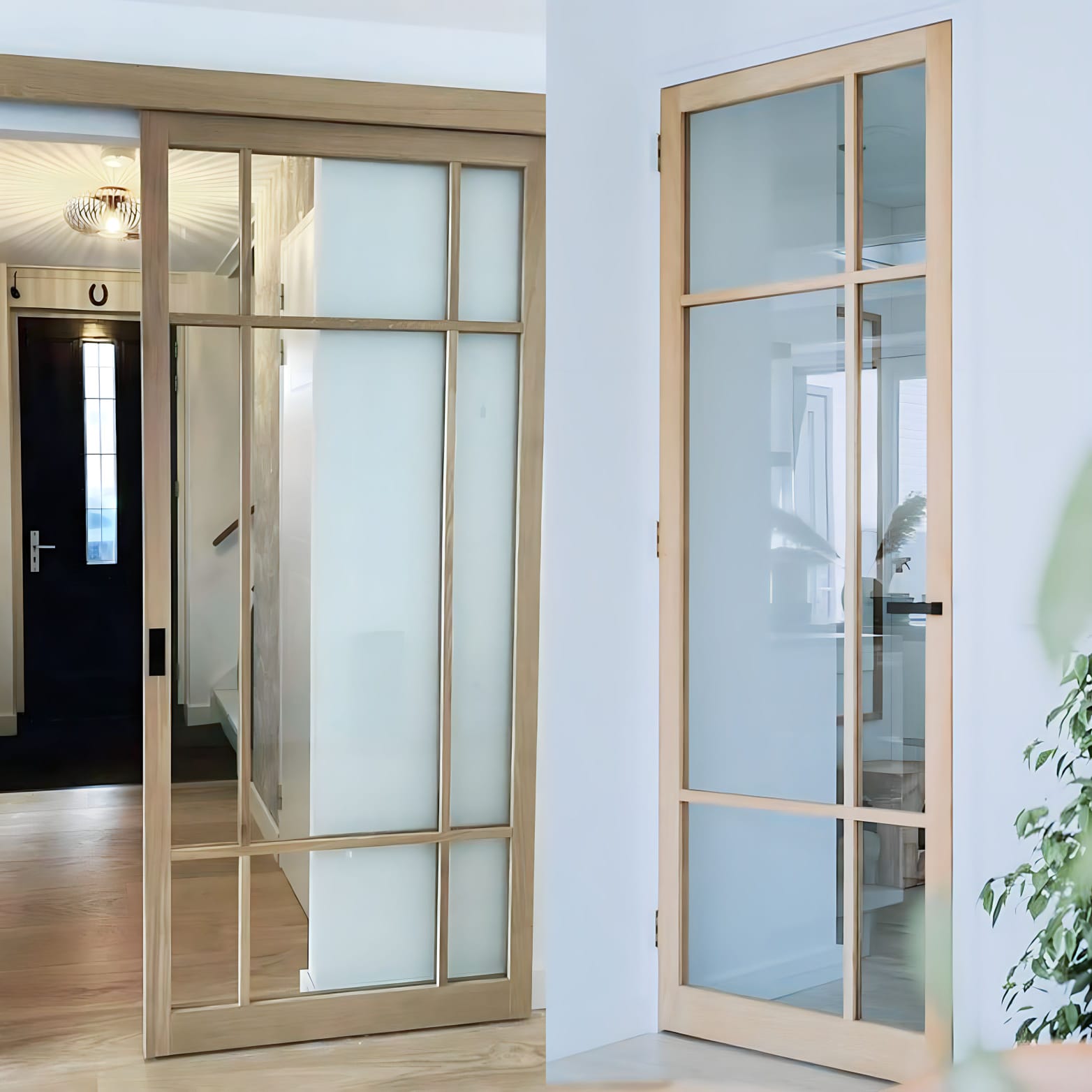 Penggunaan pintu kaca pada desain interior dapat memberikan beberapa manfaat estetika dan fungsional. Berikut adalah contoh penggunaan pintu kaca dalam desain interior: