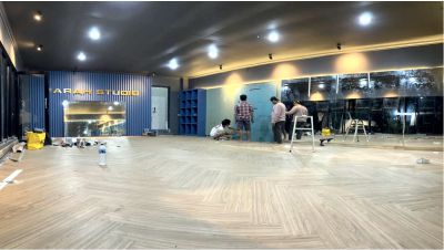 Hot Indo Jaya mendesign Studio Zumba/Aerobic Farah Studio di Leuwinanggung Tapos Depok . Studio ini sangat luas untuk yang ingin zumba di Farah Studio. dengan design gaya minimalis anda akan mendapati ruangan ini terasa luas dan lega.