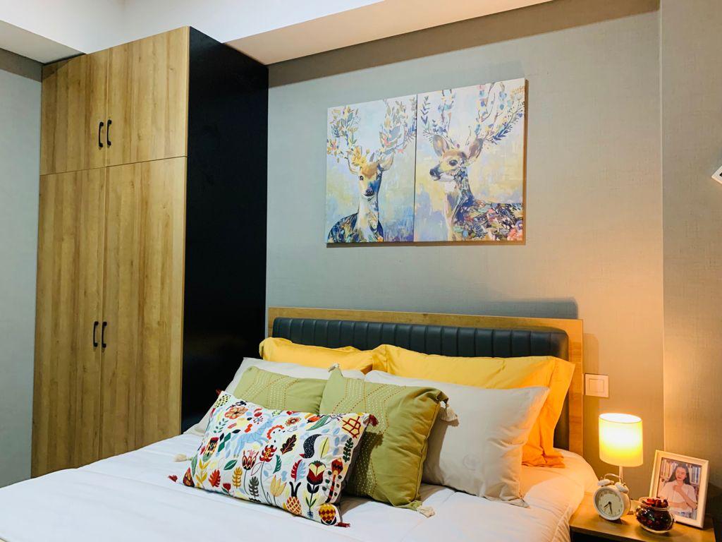warna bantal yang selaras dengan hiasan dinding membuatnya menjadi perfect match untuk design kamar yang layak ditinggali.