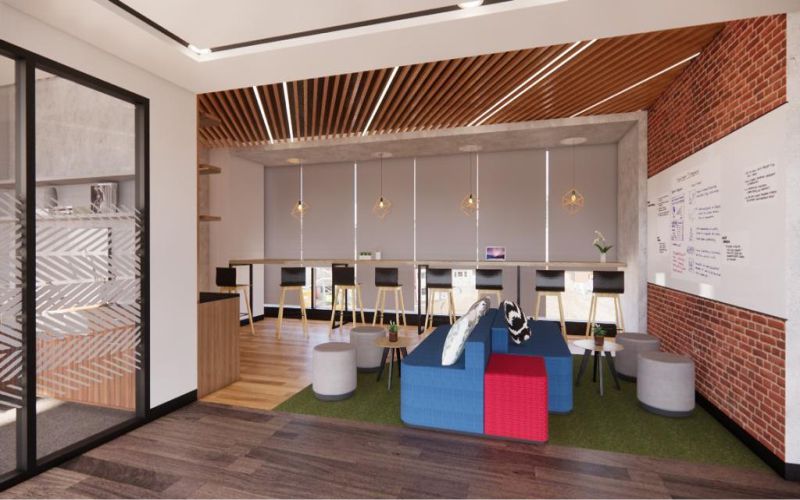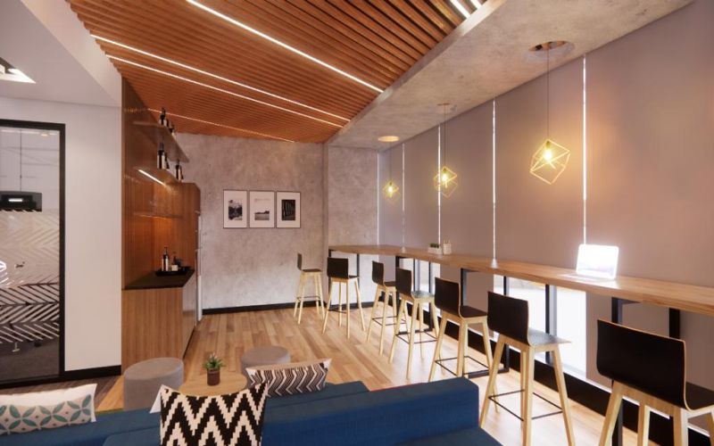 Interio design modern memberikan efek inspirasi pada penghuni ruangan ini untuk dapat berfikir modern, sedangkan interior design industrial dalam ruangan ini memberikan option pada pengguna ruangan ini untuk berfikir bebas tanpa batas sehingga efek keseluruhan dari ruangan ini akan lebih terasa.