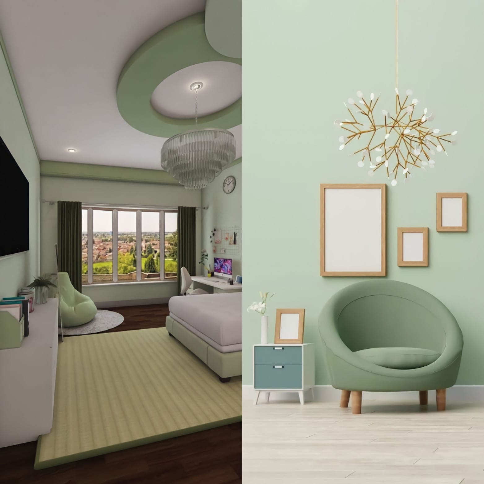 - Dinding dengan cat netral atau wallpaper sederhana.