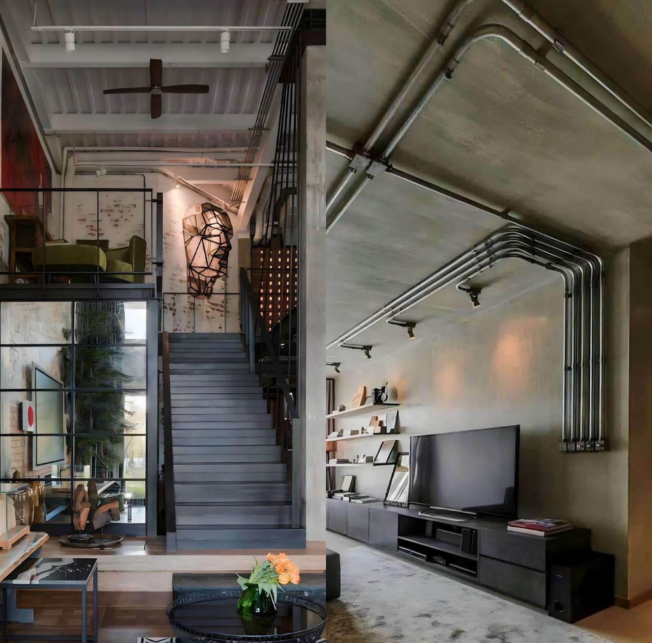 Beberapa improvisasi tentang gaya desain interior industrial diantaranya adalah :
