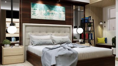 Kamar Tidur (Bedroom) dengan Design Interior Minimalis Modern dibarengi dengan Warna Hangat (Warm Color) membuat anda betah didalam kamar, mendapatkan suasana hangat membuat kamar semakin homy,