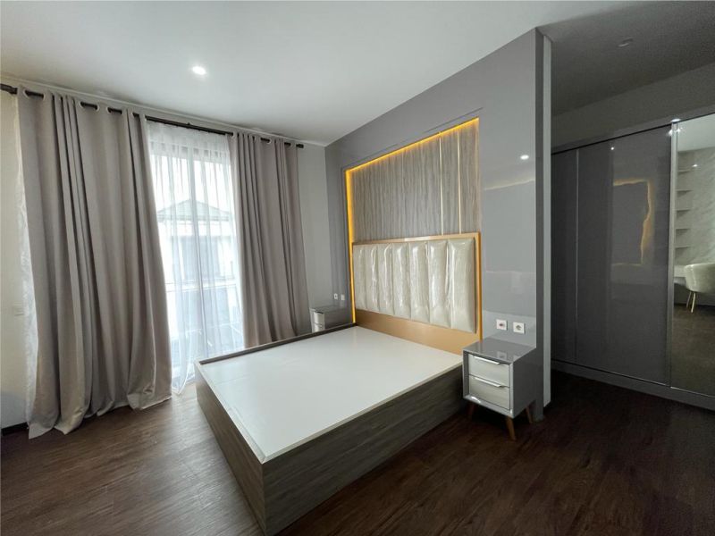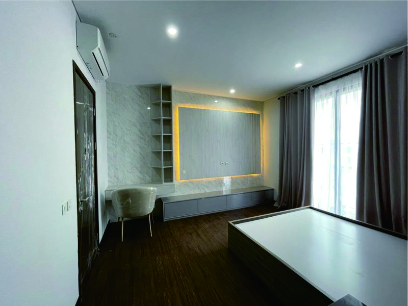 Hot Indo Jaya mengdesign kamar tidur ini agar masih bisa terlihat mewah dengan menyesuaikan luas kamar yang ada . Kamar tidur dengan warna putih abu abu sangat cocok dan dipadukan dengan beeberapa furniture terlihat tampak lebih mewah.