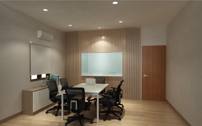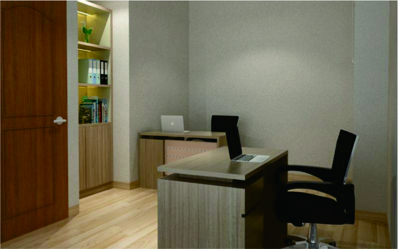 ini adalah ruangan kerja dan ruang meeting, yang berfungsi dengan baik, anda bisa melakukan presentasi disini dengan layar slideshow yang telah disediakan atau hanya sekerja mencorat-coret draft saja, dan anda bisa menyimpan semua barang-barang yang dibutuhkan dalam cabinet yang tersedia.